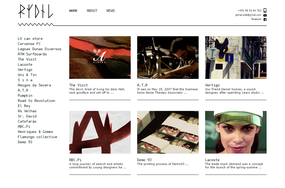 Jaime Rydel has work that varies from creative development, printed media, visual profiling, to visual installations.